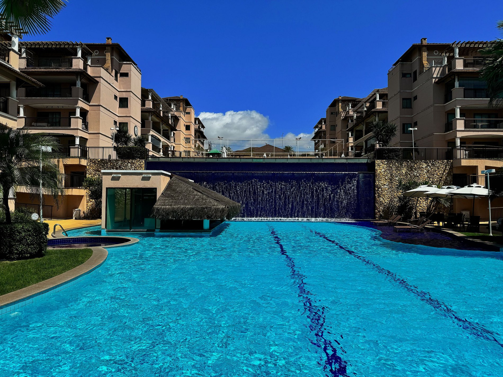 -2 Piscinas sendo uma com banheira de hidromassagem e cascata