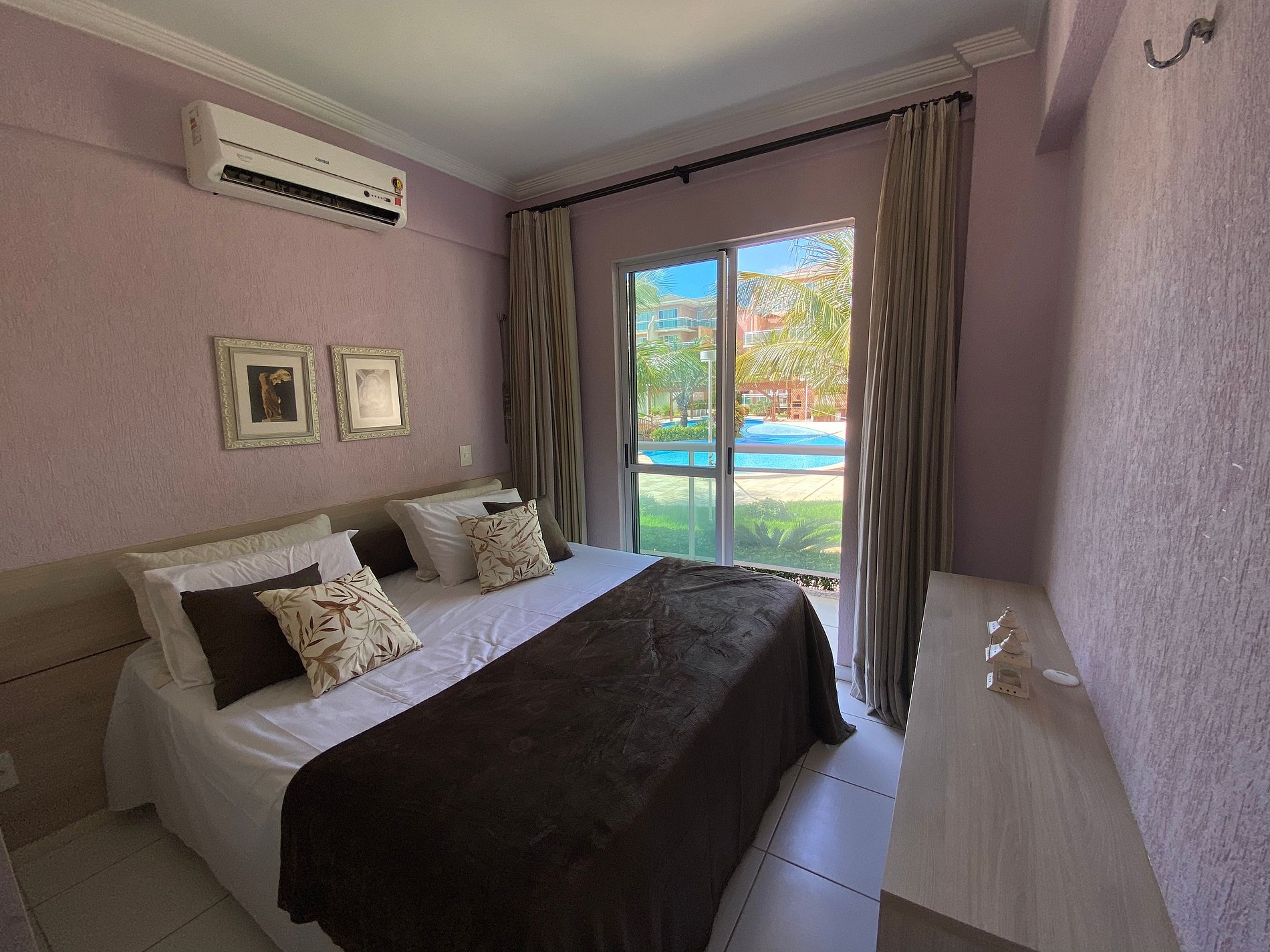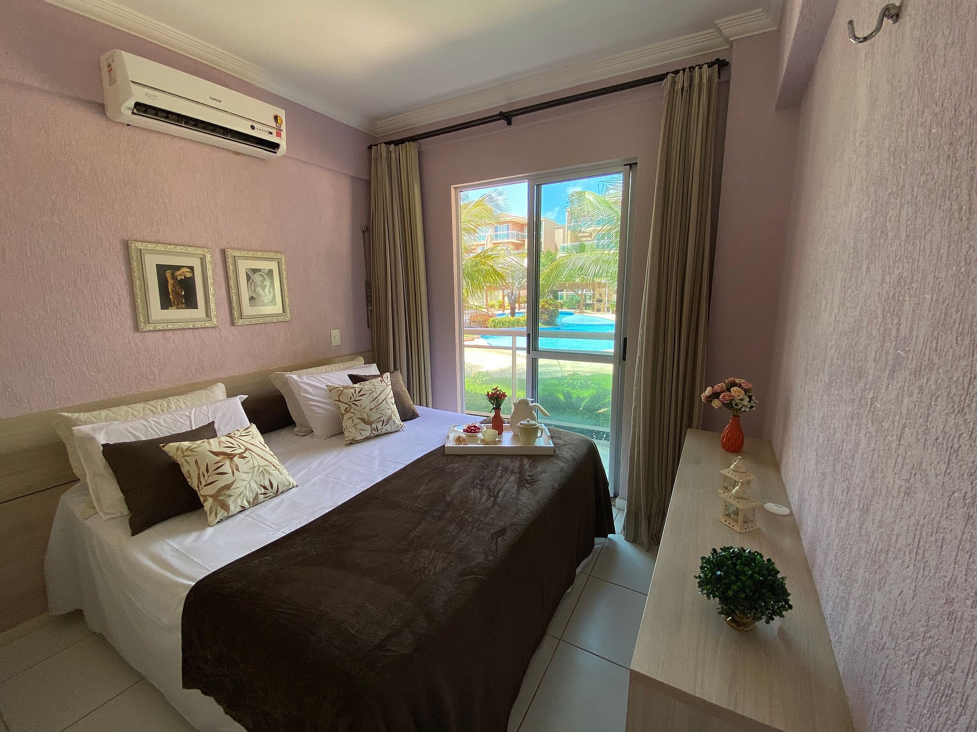 Aproveite o conforto no Condomínio Palm Beach, em Porto das Dunas, a apenas 300m do Beach Park e da praia. Aptos. c/ 2 quartos, sendo 1 suíte, p/ até 5 hóspedes. Wi-Fi, estacionamento, ar-condicionado, cozinha completa e TV.