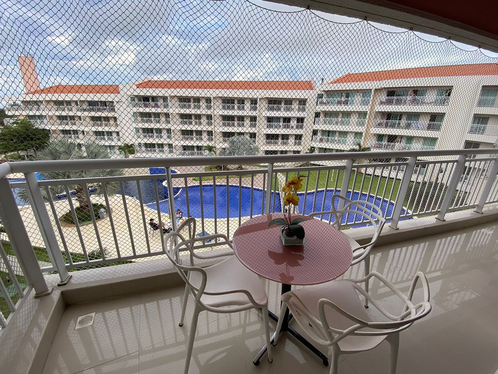 - Varanda privativa com vista para piscina, ideal para desfrutar do clima local.