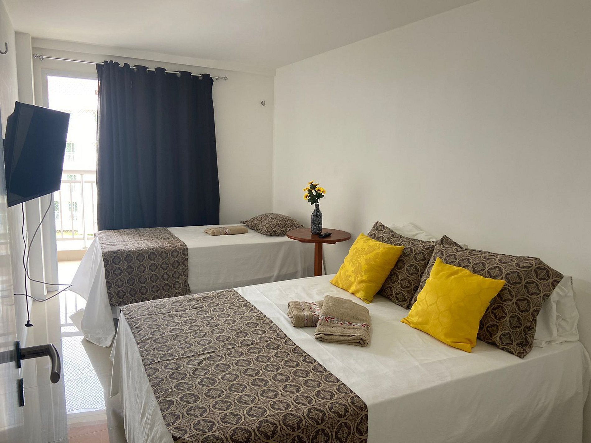 Descubra o Solarium Residence em Aquiraz, a apenas 800 m. da Praia e do Beach Park. Aptos. confortáveis c/ 2 quartos, sendo uma suíte, varanda com vista para a piscina, cozinha equipada, sala ampla de jantar e estar com TV de tela plana e 2 banheiros, wi-fi, estacionamento gratuito, portaria 24hs e muito mais...